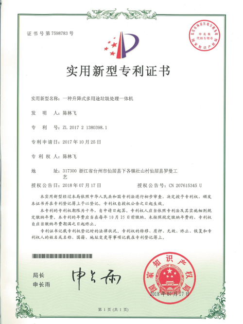 一種升降式多用途垃圾處理一體機(jī)