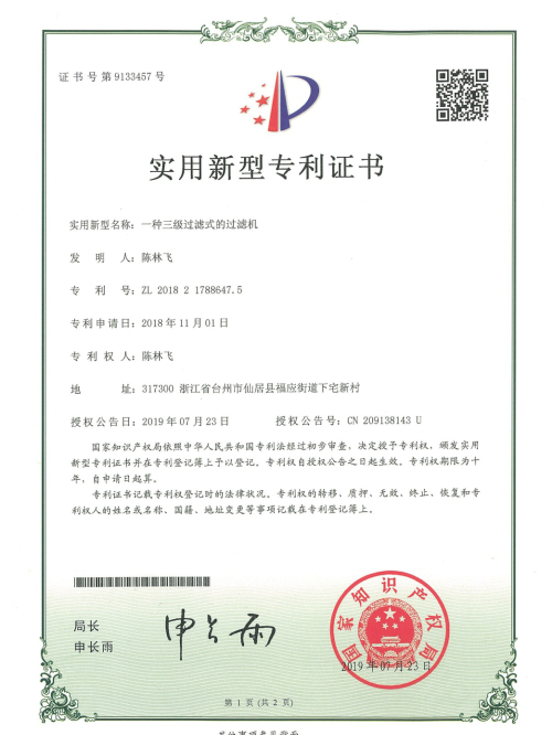 一種三級(jí)過濾式的過濾機(jī)